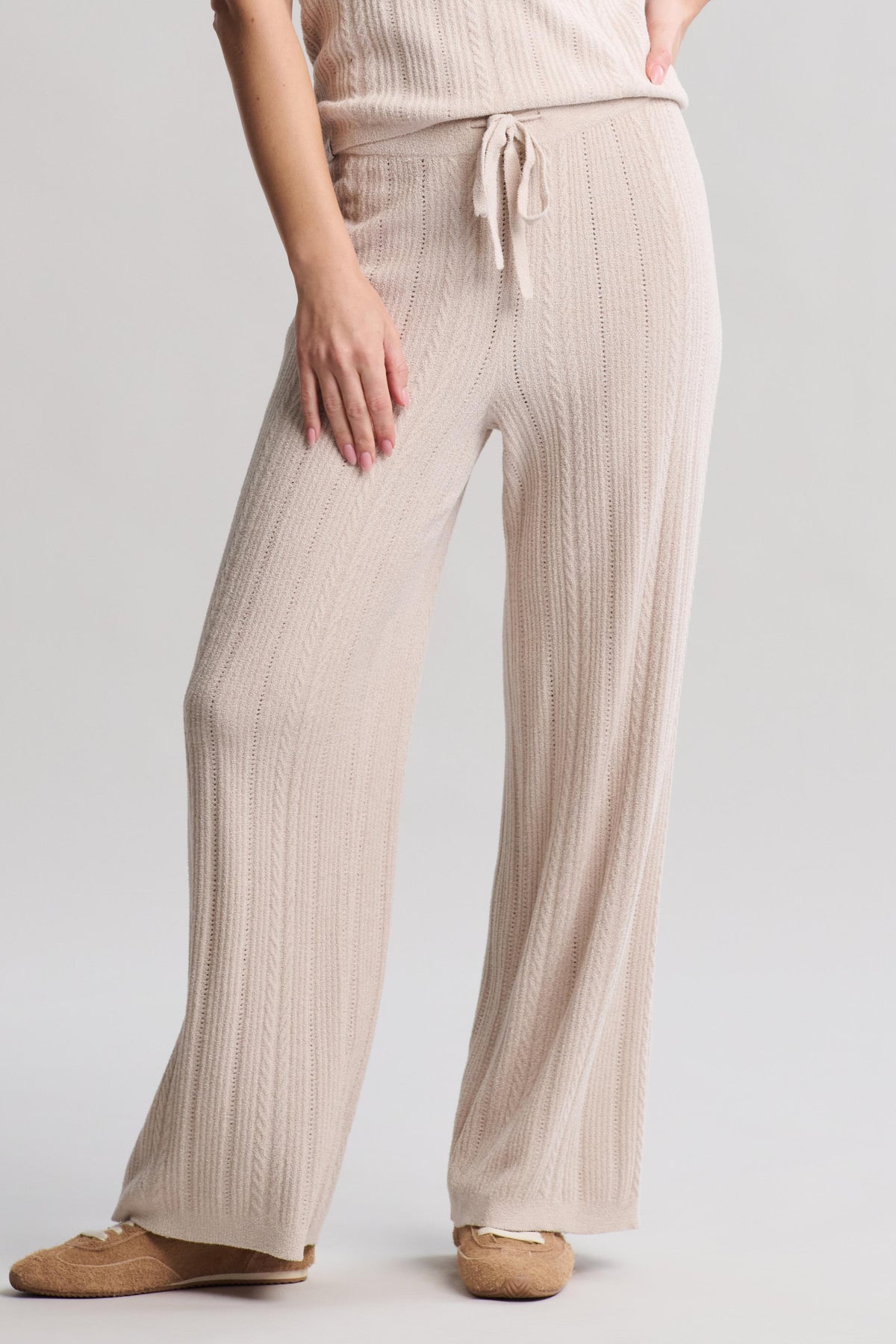 Soft, breathable, and effortlessly chic — our CozyChic Ultra Lite® Cable Knit Ankle Pant is your new go-to for elevated lounging and everyday wear. Crafted from our featherlight CozyChic Ultra Lite® yarn, these wide leg pants feature an all-over cable rib knit with delicate pointelle stitch detailing for texture that feels as beautiful as it looks. A drawstring waistband with encased elastic ensures a personalized, comfy fit, while ribbed leg openings and a modern ankle-grazing length keep the silhouette sleek and versatile. Make it a set with our CozyChic Ultra Lite® Cable Knit Cardigan with Ruffle and our CozyChic Ultra Lite® Cable Knit Tank. Imported.