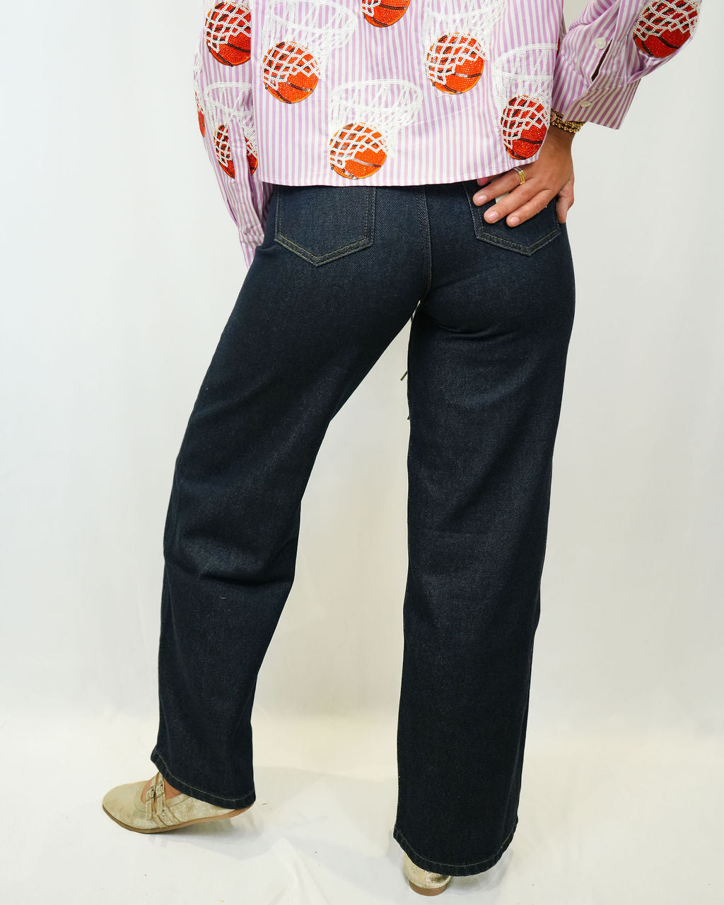 Be trendy this season in our wide leg jeans adorned with a drawstring waist.