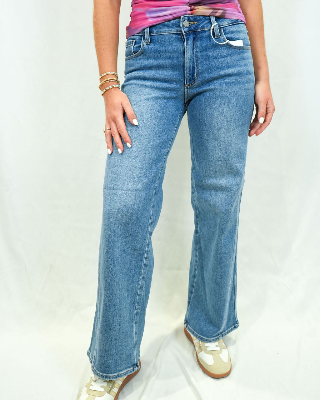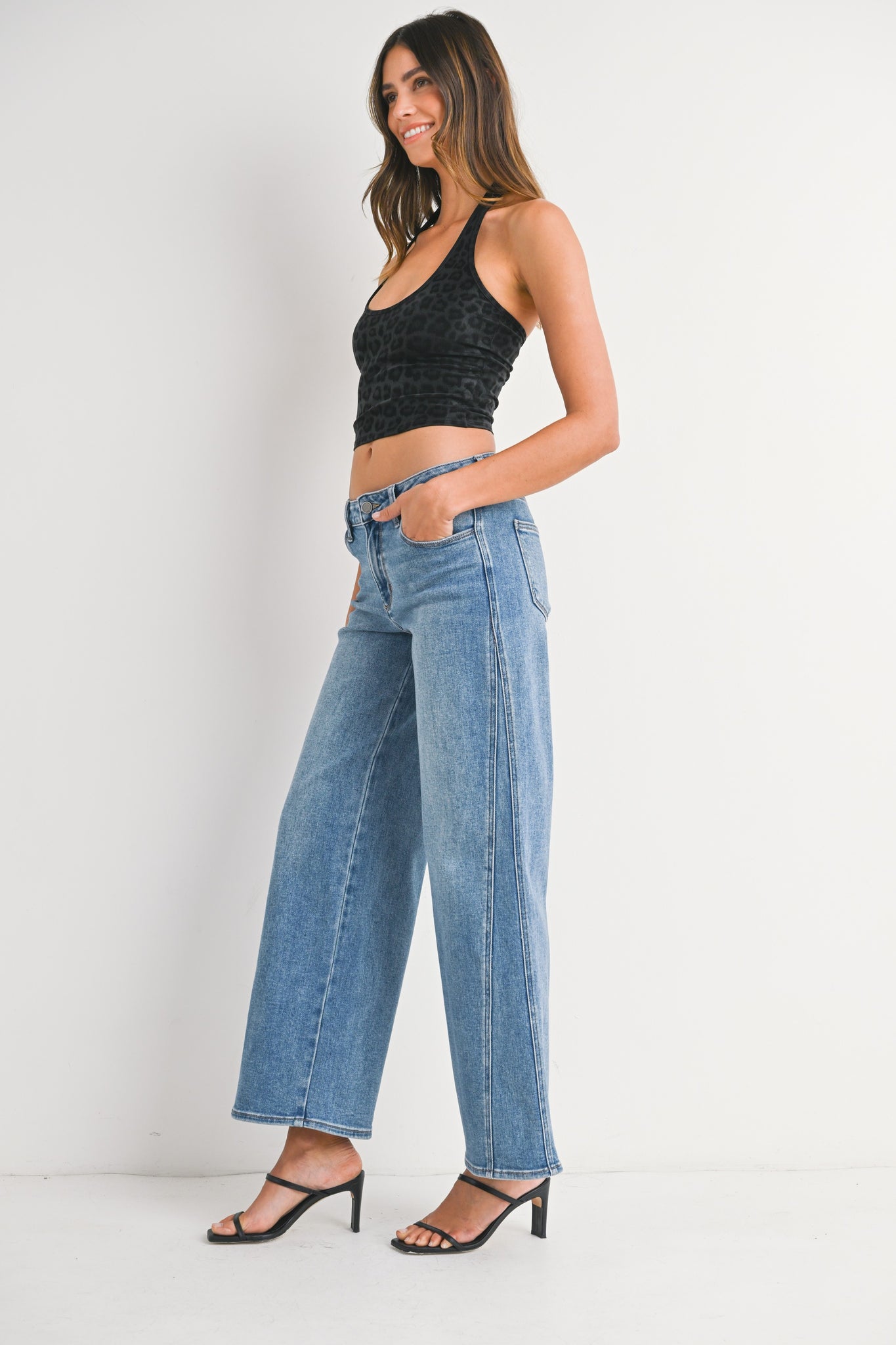 These jeans effortlessly elevate any wardrobe with their chic low-rise fit and wide-leg cut. The unique seaming detail adds a refined, tailored touch, shaping a long, lean silhouette that's both flattering and eye-catching. 9.5'' RISE, 30'' INSEAM, 11'' OPENING