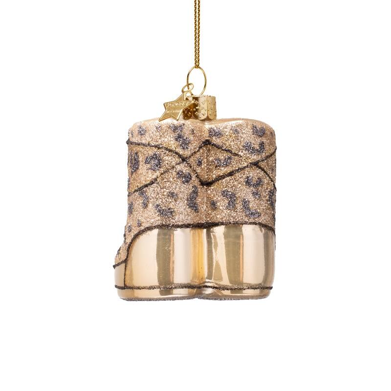 Champagne Panther Snow Boots Glass Ornament