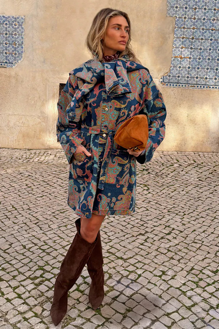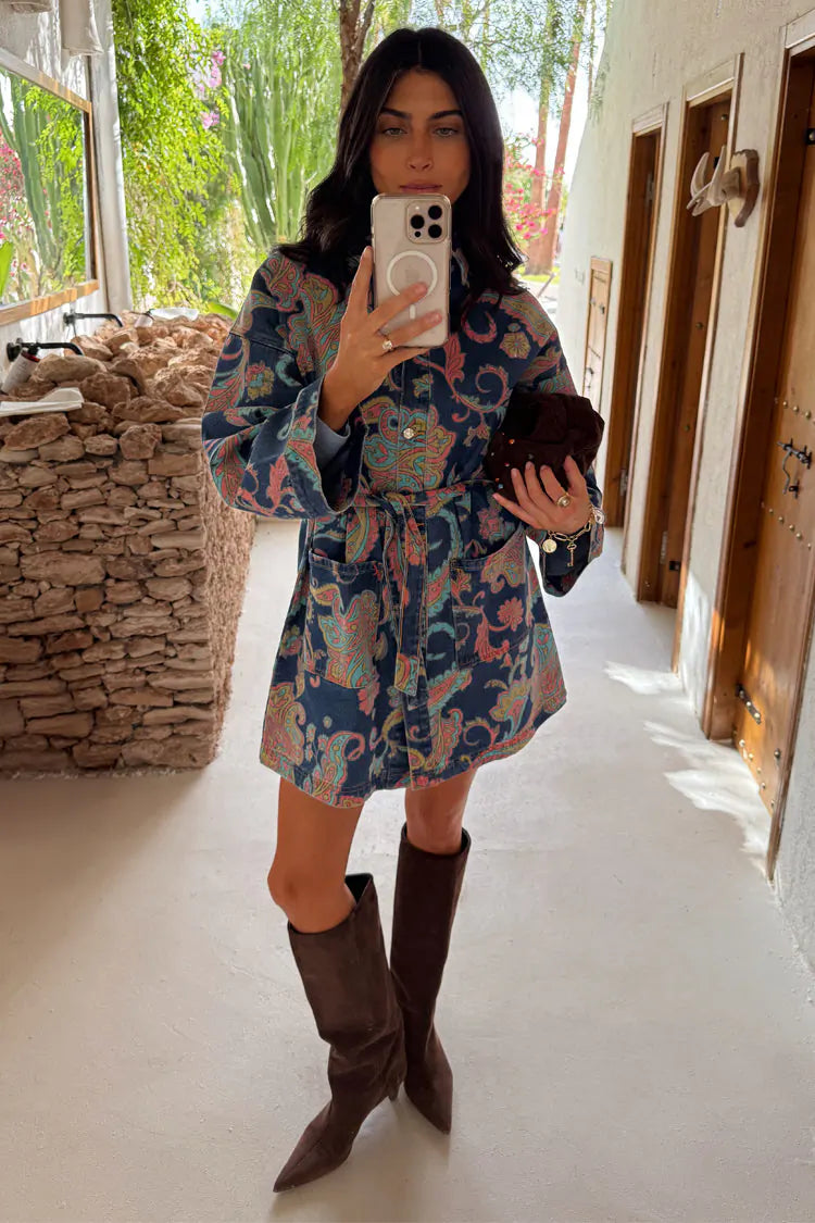 Paisley Denim Belted Shacket