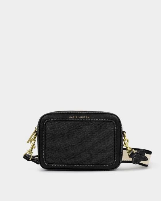 Our Avery Small Crossbody Bag in Black showcases a timeless camera bag silhouette, made from natural raffia with vegan leather trims. It features a secure top zip closure and a detachable, adjustable strap with asymmetric detail. Finished with gold-tone branded logo hardware on the strap, it’s an everyday essential for the girl on the go.
