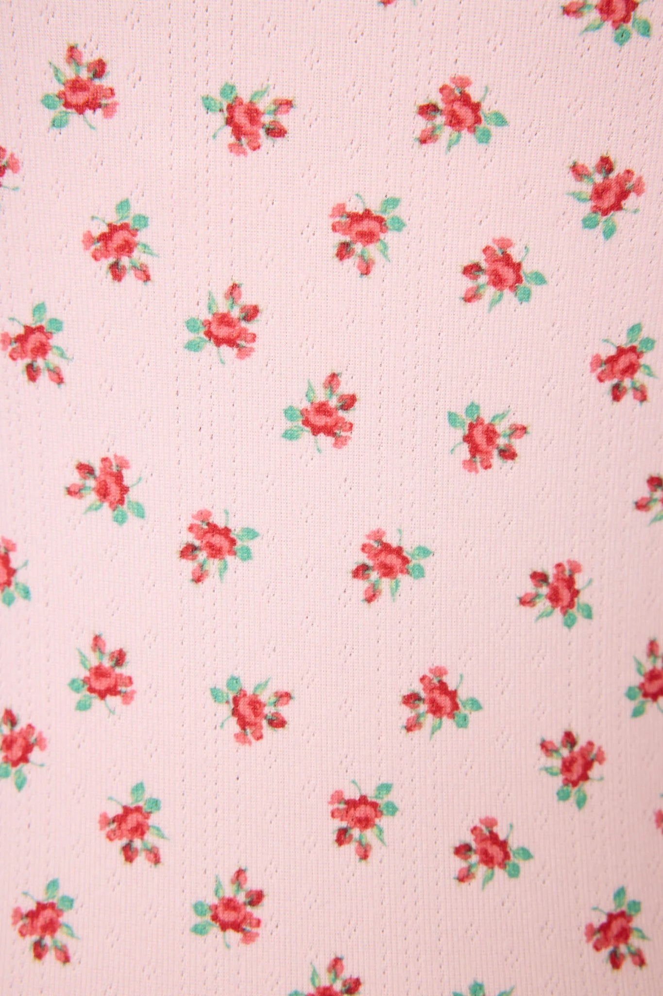 Classic girlhood charm nods to holiday cheer in this pink pointelle pajama set, styled with a ditsy floral tank and drawstring shorts. With a scoop neckline and ruffle trim, it’s sweet, playful, and cozy enough for festive mornings.