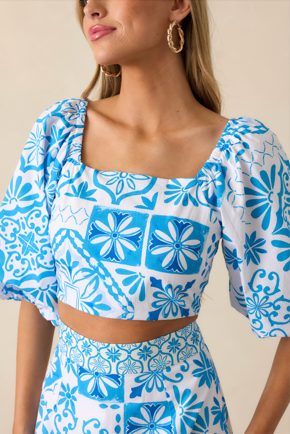 Prosperina Presley Crop Top | Aegean Blue Tile