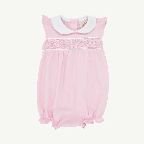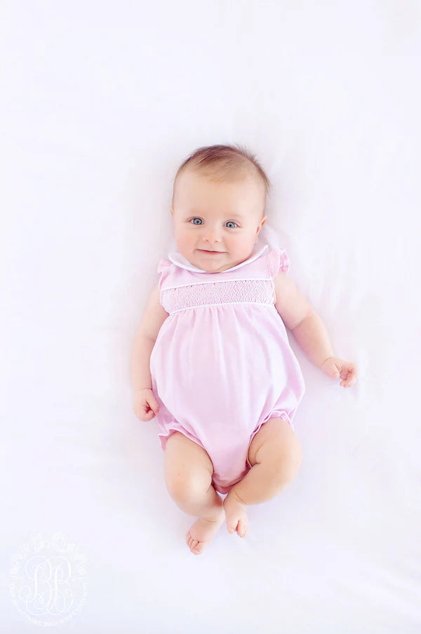 The Banbury Bubble in Palm Beach Pink is a true classic! This sweet bubble features smocking, flutter sleeves and a traditional collar. She'll be cool, comfortable and look perfectly put together at the same time.