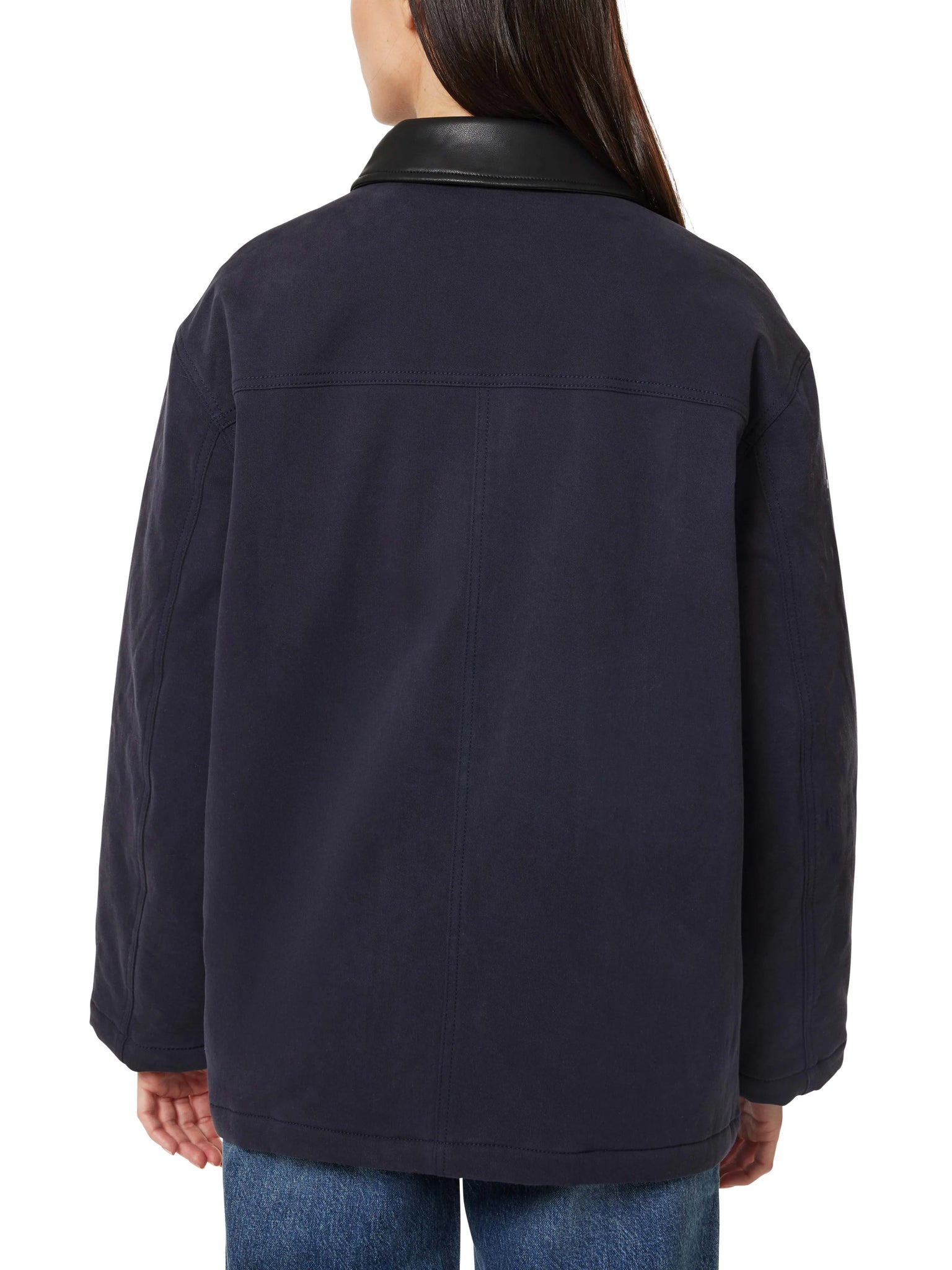 Inspired by heritage barn coats, reimagined with a soft faux leather collar and easy snap-front closure. Oversized and made to move.