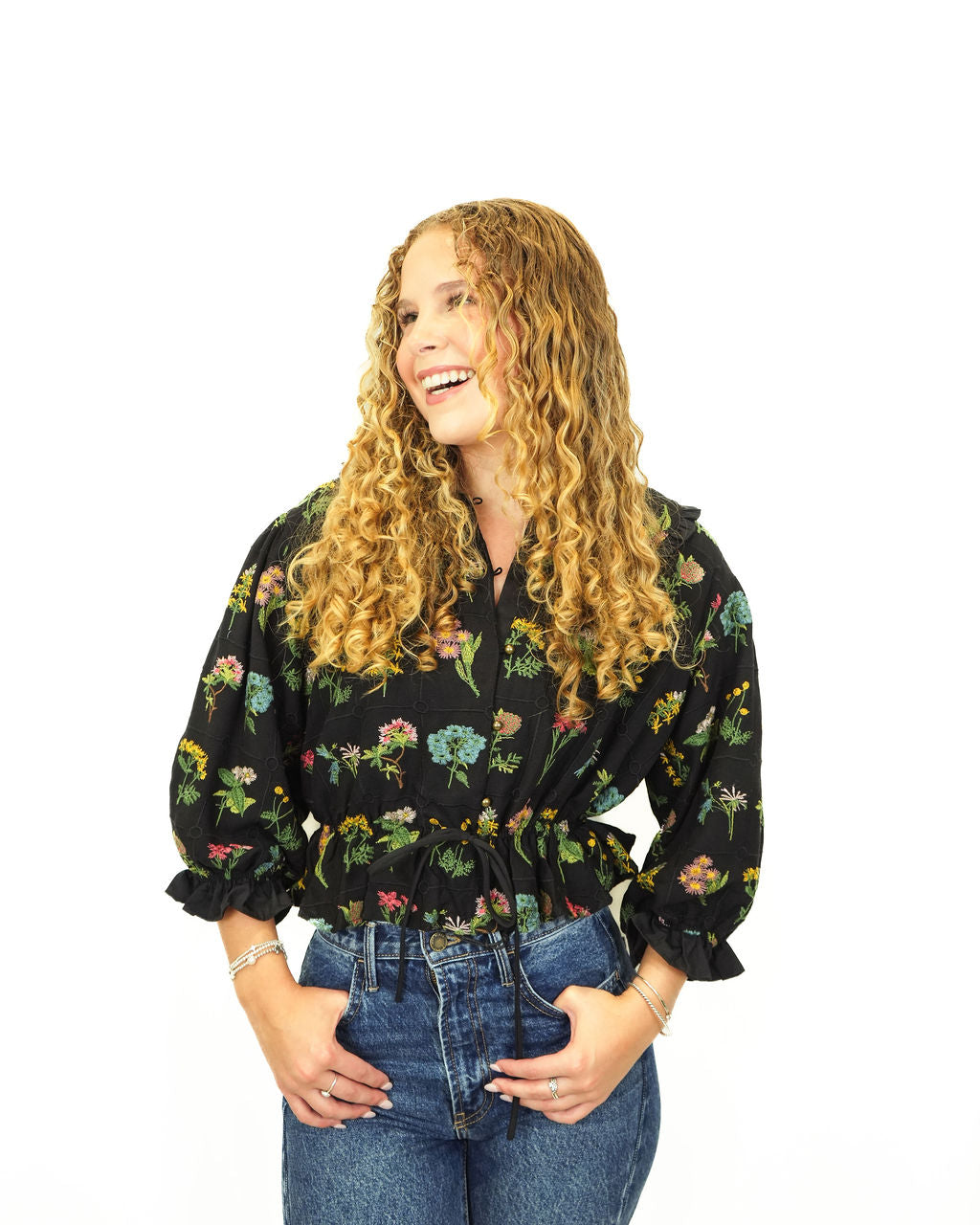 Embroidered Cinched Waist Shirt