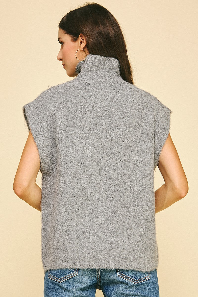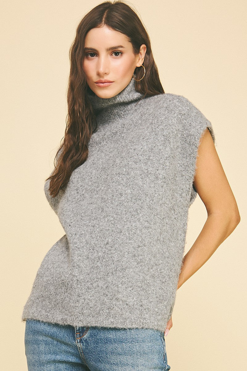 SOFT YARN SWEATER TURTLE NECK CAP SLEEVE COMFORT FIT